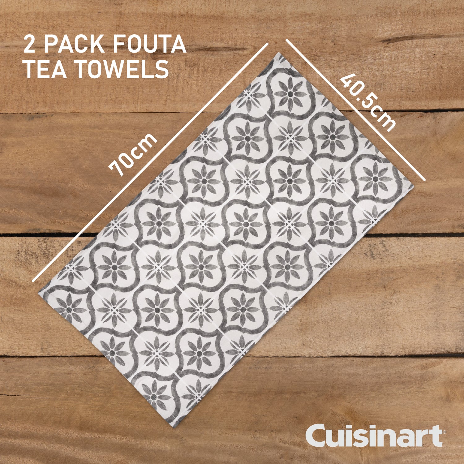 Cuisinart Fouta Tea Towels, 2 Piece Set, Grey Tile