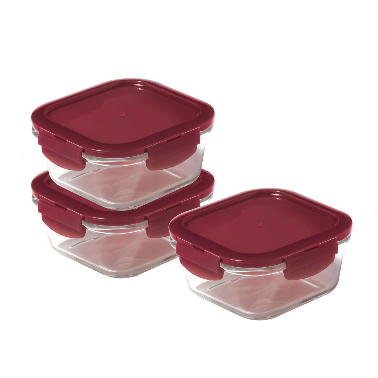 SET INCLUDES - 3 x 500ml LocknLock glass square food storage containers made from borosilicate glass