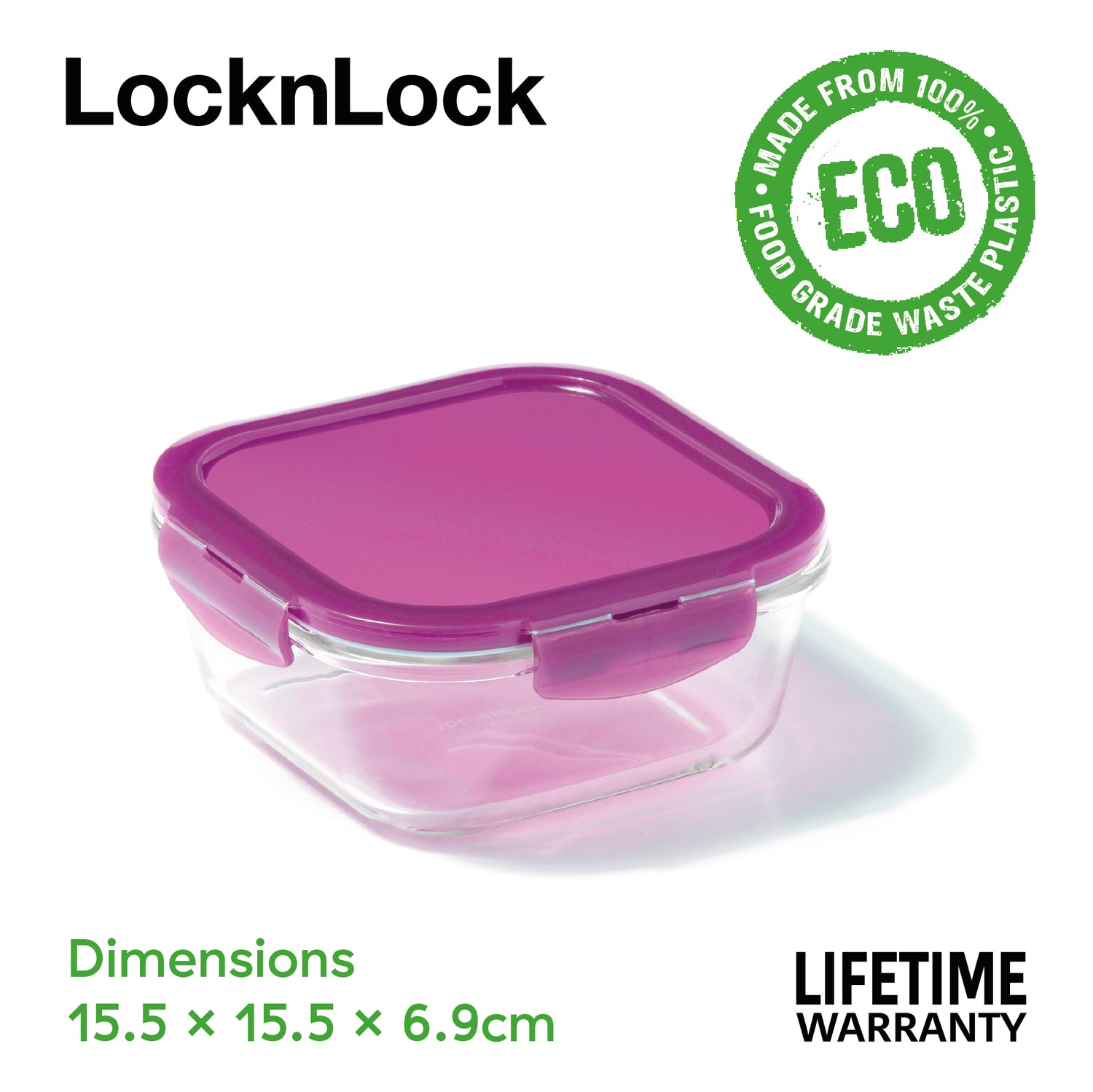 RECYCLED LIDS - Eco Ovenglass products are all topped with LocknLock's iconic Eco lids made from left over production plastic to ensure nothing is wasted. Lid colours may vary as no two pieces are the same