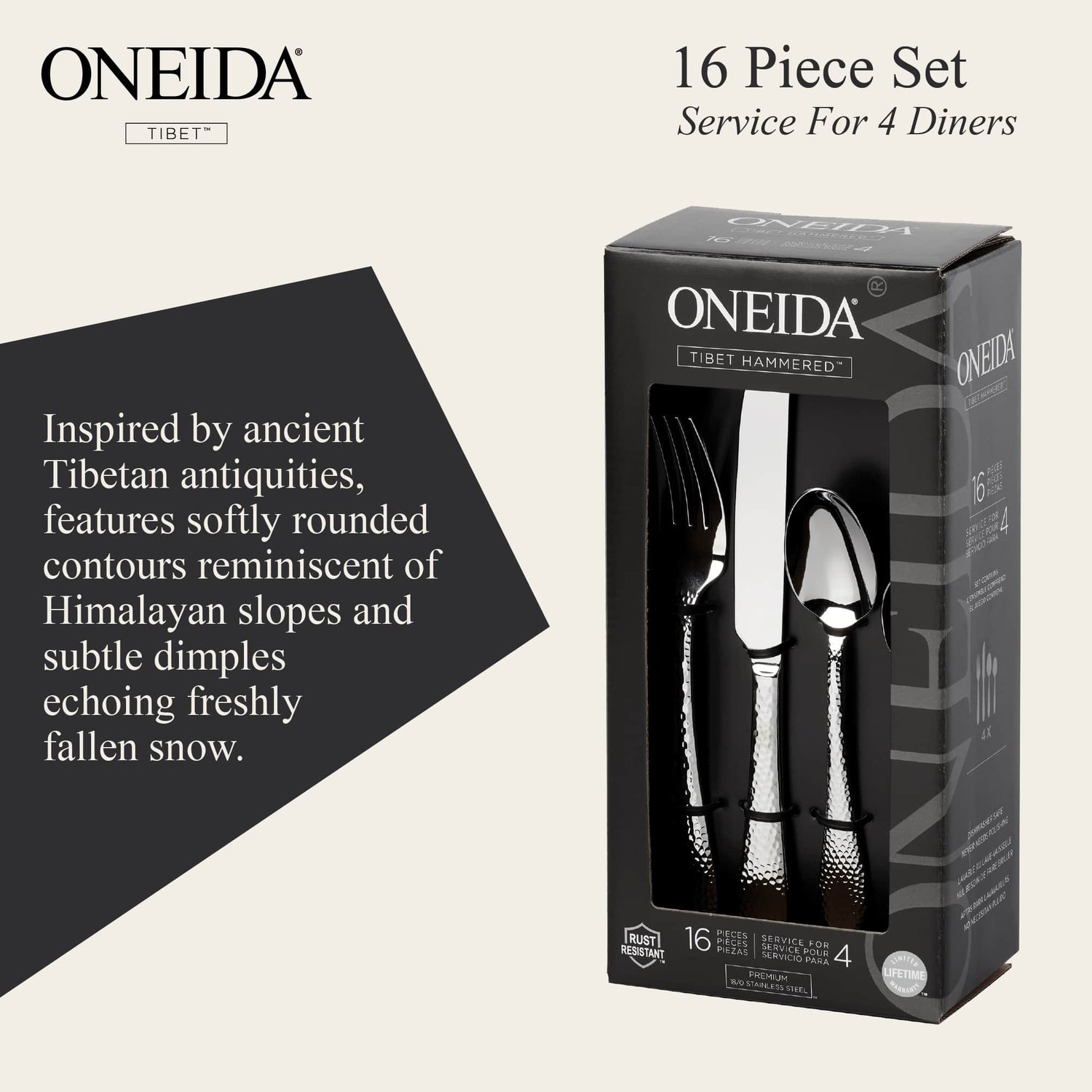 ONEIDA Tibet 16 Pieces Cutlery Set - Stainless Steel - 4 Person Place Setting