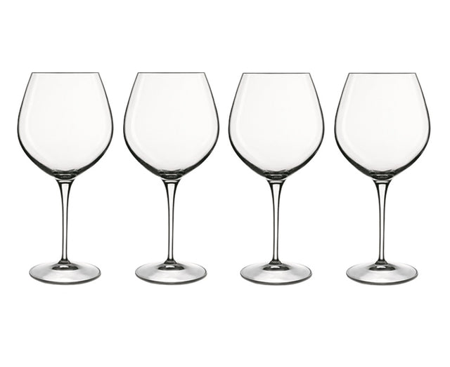 The Luigi Bormioli Crescendo range comes with a classical design that will elevate every drink. The perfect choice for wine connoisseurs with graceful contours that rise upward to capture the aroma and taste. Created with the SON.hyx technology for sparkling clear crystal glass that’s ultra strong. This set is composed of 4 dishwasher safe wine glasses, titanium reinforced and with a generous capacity of 660 ml per glass.