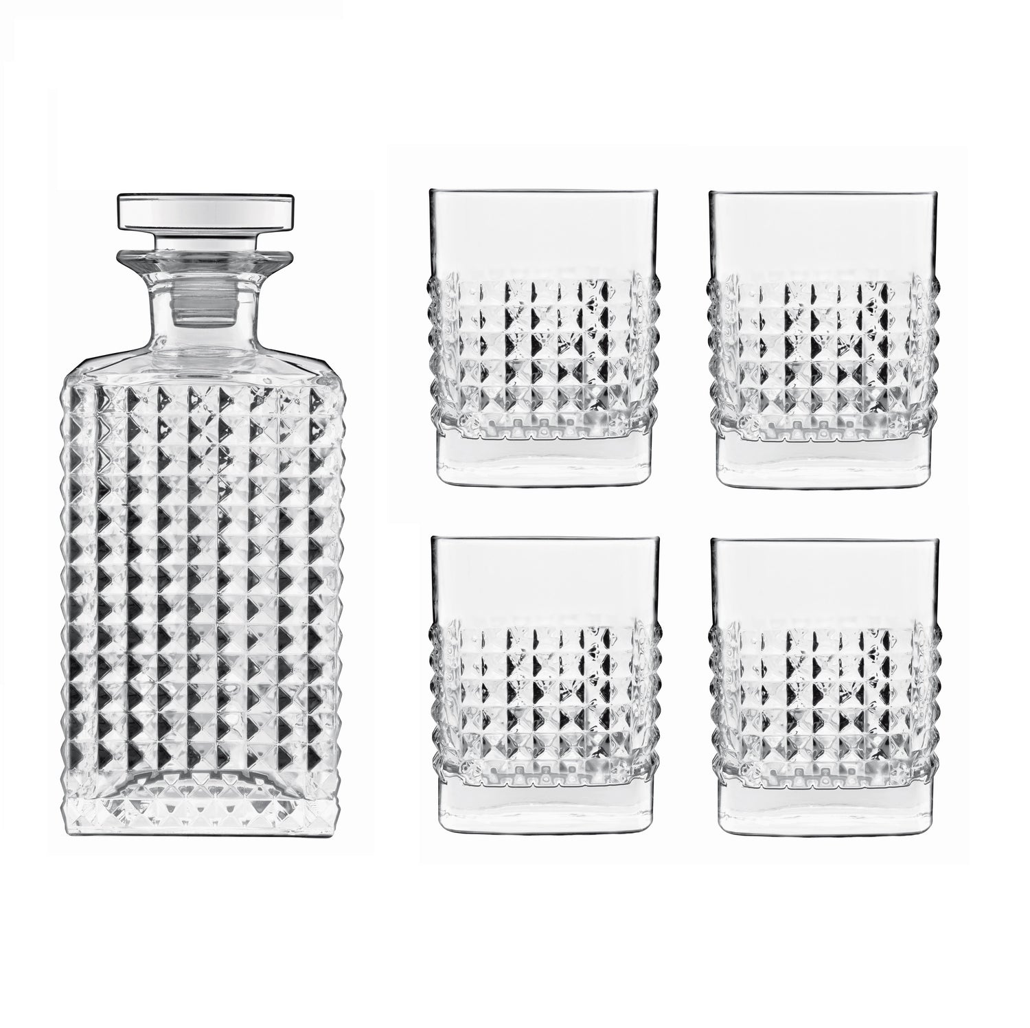 This unique whisky gift set includes a whisky decanter and four whisky tumblers. A wonderful gift for a whisky lover, or a stylish addition to your home bar.