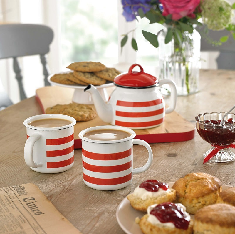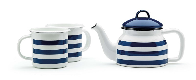 This Prestige Vintage teapot and mug set in blue is ideal for afternoon tea and would make a ideal gift for a close friend or loved one. This sets stylish design is complimented by practical features, such as the straining basket incorporated within the teapot for loose leaved teas. Crafted from enamel coated steel means the non porous surface will resist staining and is simple to clean.