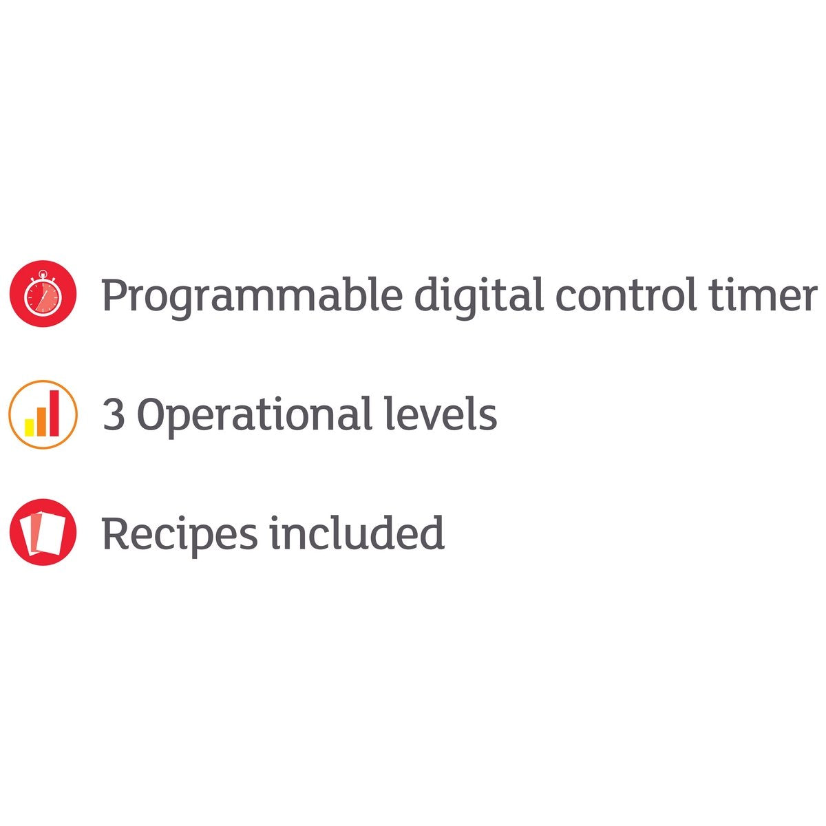 If you're not ready to serve up when cooking is complete, simply switch to the keep warm function and dish up when you're ready. The tough glass lid keeps all the flavour, goodness and heat locked in too. Featuring 3 operational levels - high, low and keep warm - just choose the appropriate setting to ensure your meal cooks to perfection.