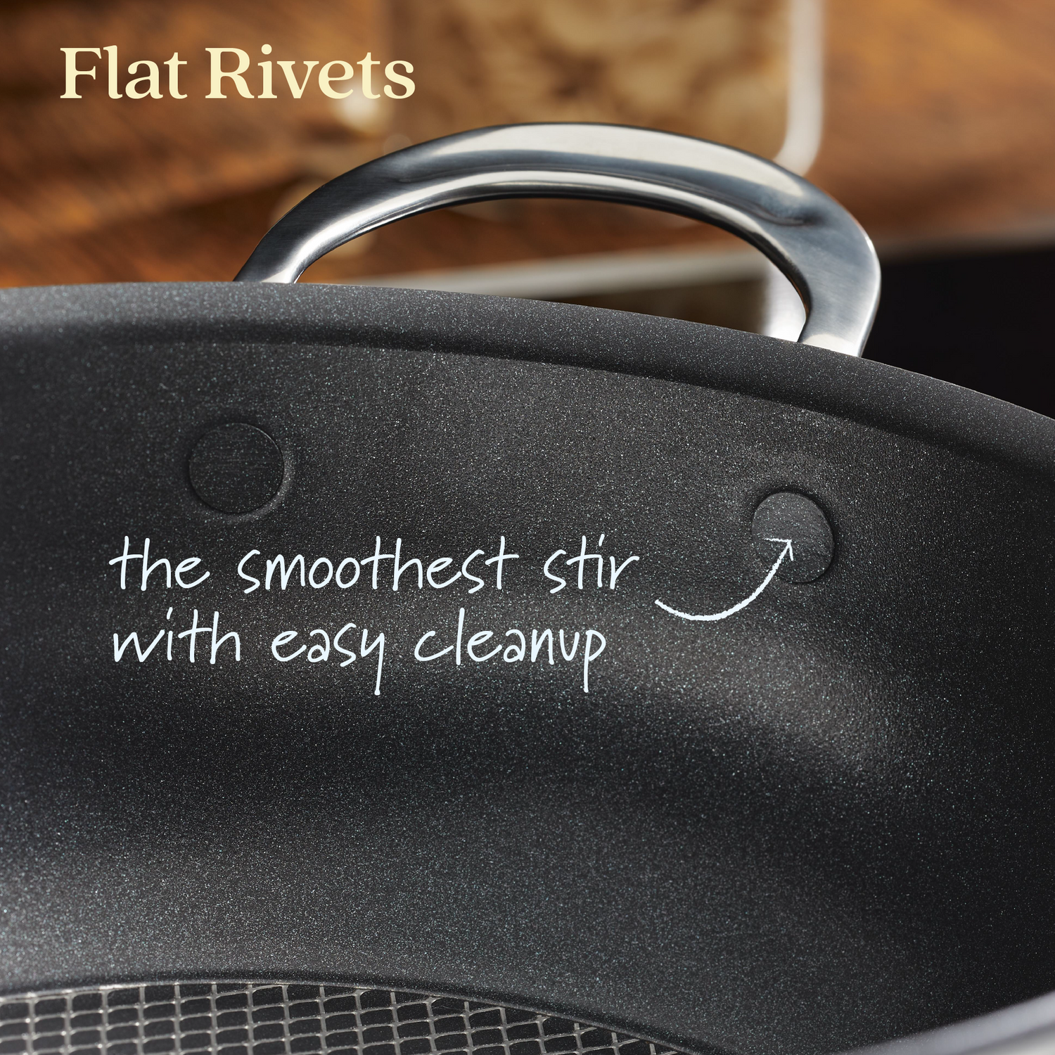 An ultra-durable, PFOA-free nonstick finish matched with unique, flat rivets provides one of the smoothest cooking surfaces yet, and Anolon X pots and pans are metal utensil safe, oven safe to 260 degrees for the perfect finish, and dishwasher safe for the easiest cleanup.