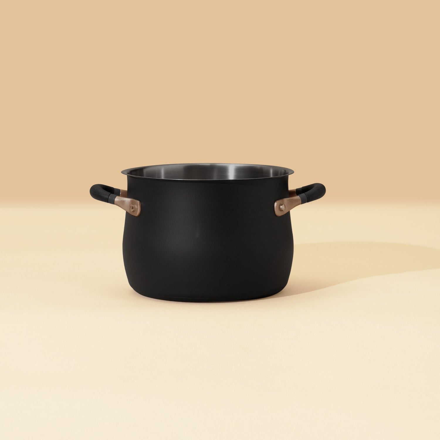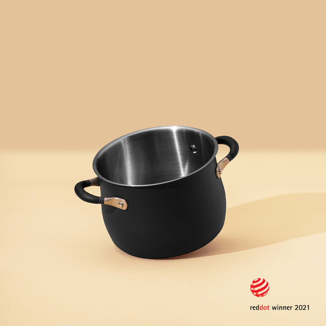 Our Accent Series pots all have the same superpower: catching messy boilovers in the kitchen. The pot's special curvature and rim design help keep the bubbles at bay much more effectively than regular straight-sided pots. A truly fuss-free design.
