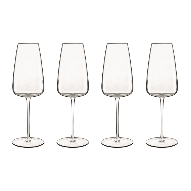 A softly tapered prosecco glass with a crisp, contemporary feel. This set of 4 prosecco glasses features a charming design that will enhance any setting with its clean lines. These glasses feature SON.hyx technology for sparkling clear glass that's ultra strong. Dishwasher safe.