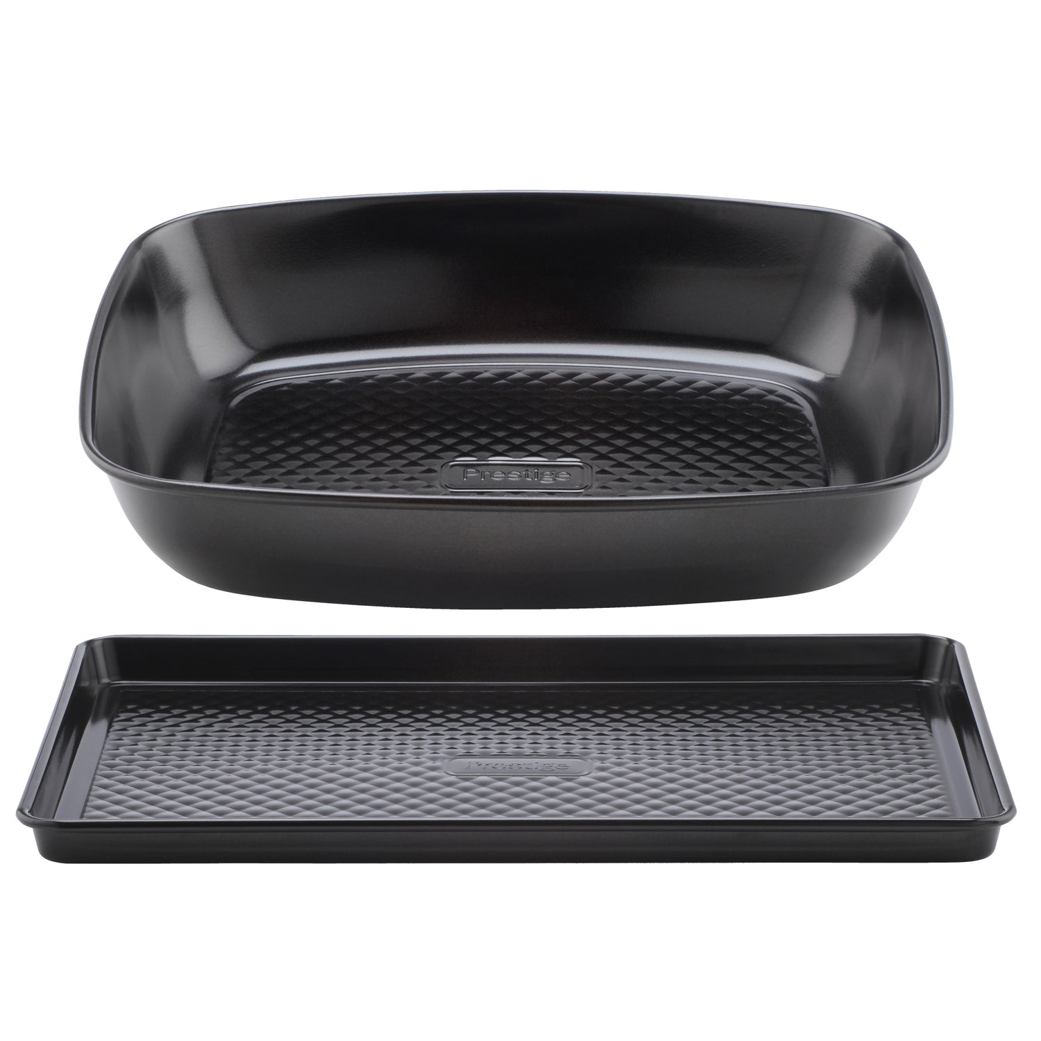 Get affordable Non-Stick with the Prestige Inspire range, shop our new Non-Stick Oven Tray & Roasting Tray Set! Our Inspire Set is essential for Roasting meat, vegetables and potatoes without the worry of your food sticking to the bakeware! Made from heavy gauge carbon steel, that allows heat to be distributed more evenly for perfect cooking results every time.